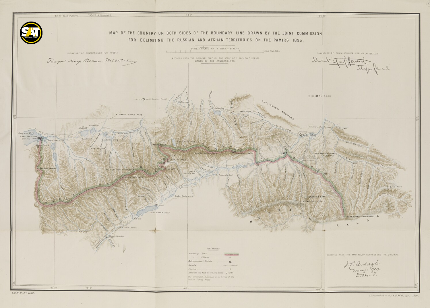 Boundary line of afghanistan with tajikistan (then part of russian empire) drawn by the joint commission for delimiting the russian and afghan territories on the pamirs